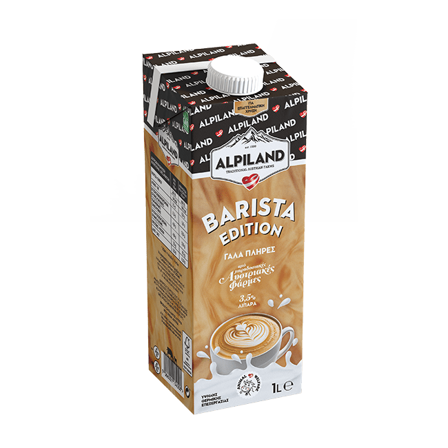 Πώς το απολαμβάνουμε: Στο σπίτι ή στην επαγγελματική σας μηχανή, το Alpiland Γάλα Barista ESL Πλήρες 3,5% απογειώνει κάθε ζεστό ρόφημα. Με τρία επιπλέον χαρακτηριστικά: δημιουργεί πλούσιο, κρεμώδες αφρόγαλα, παραμένει φρέσκο περισσότερες ημέρες και φέρνει στο φλιτζάνι σας τη γεύση των αυστριακών Άλπεων.