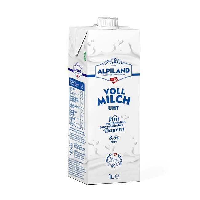 To Alpiland Γάλα Πλήρες 3,5% συνδυάζει την κορυφαία ποιότητα που μόνο οι μικρές φάρμες των αυστριακών Άλπεων μπορούν να προσφέρουν, με την τεχνολογία UHT που εξασφαλίζει μεγάλη διάρκεια διατήρησης εκτός ψυγείου.