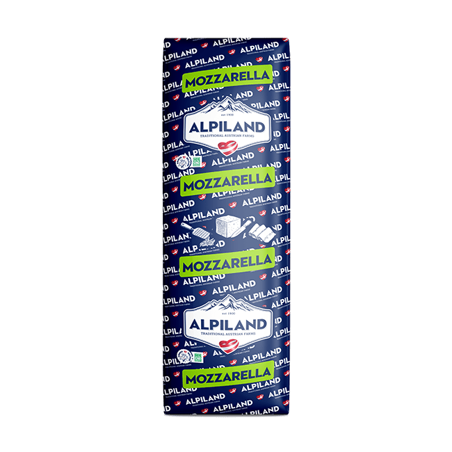 Φτιάχνουμε την Alpiland Μοzzarella από αγελαδινό γάλα Αυστρίας κορυφαίας ποιότητας. Έχει μαλακή υφή, απαλή γεύση γάλακτος και ελαστική υφή, όταν την ψήσετε.